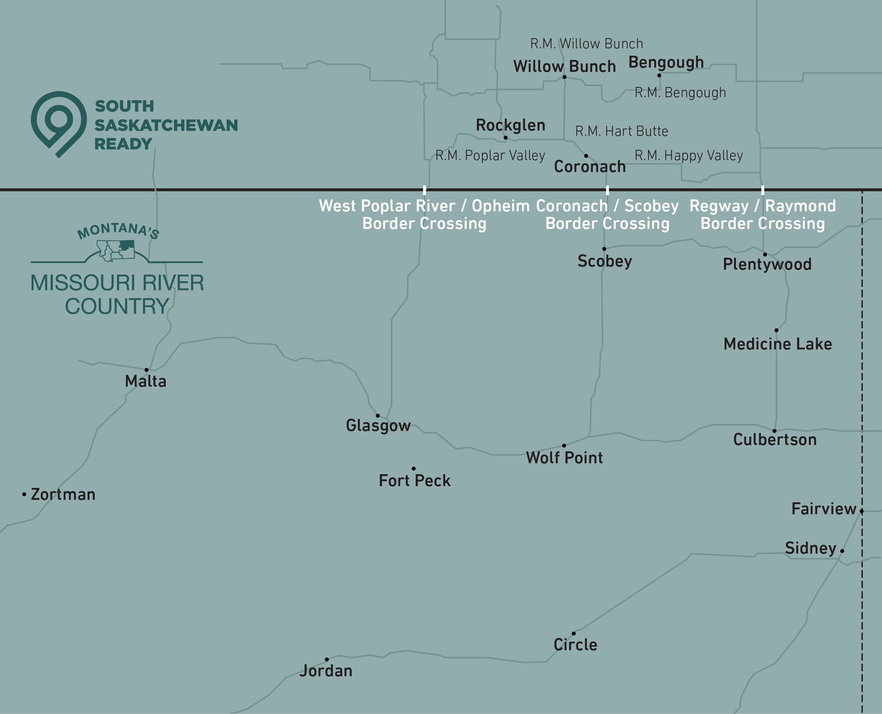 Crossing between Coronach, Saskatchewan, and Scobey, Montana